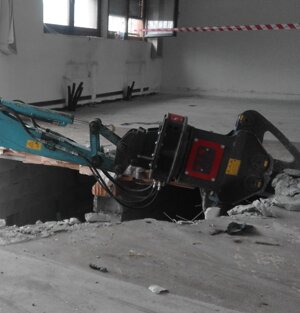 CREMONA Demolizione con escavatore e pinza VTN di un solaio dello spessore di cm.40 armato