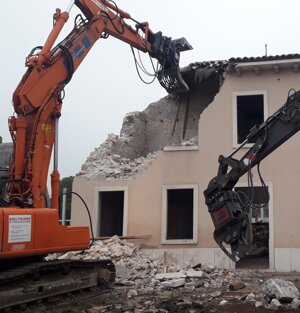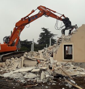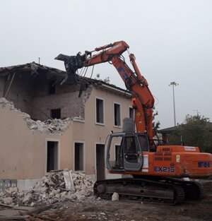 VERONA Demolizione corpo uffici ex concessionaria con selezione a terra del materiale