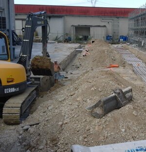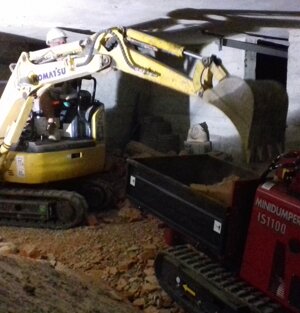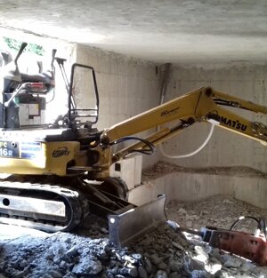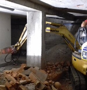 CREMONA In questo cantiere abbiamo calato in una bocca da lupo un escavatore e una motocariola per eseguire all'interno di un fabbricato esistente, la fossa per l'ascensore, l'altezza era talmente ridotta che l'operatore รจ stato costretto a togliere il sedile per recuperare 15 cm mancanti